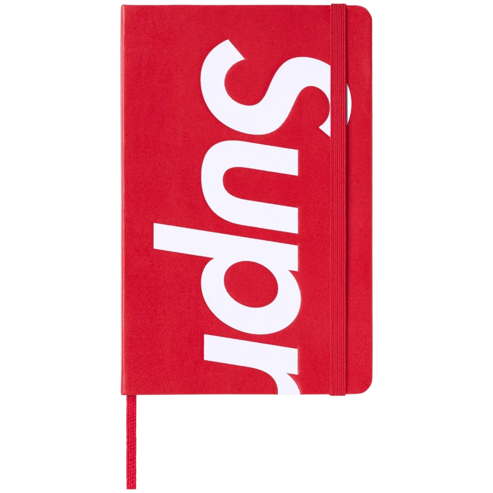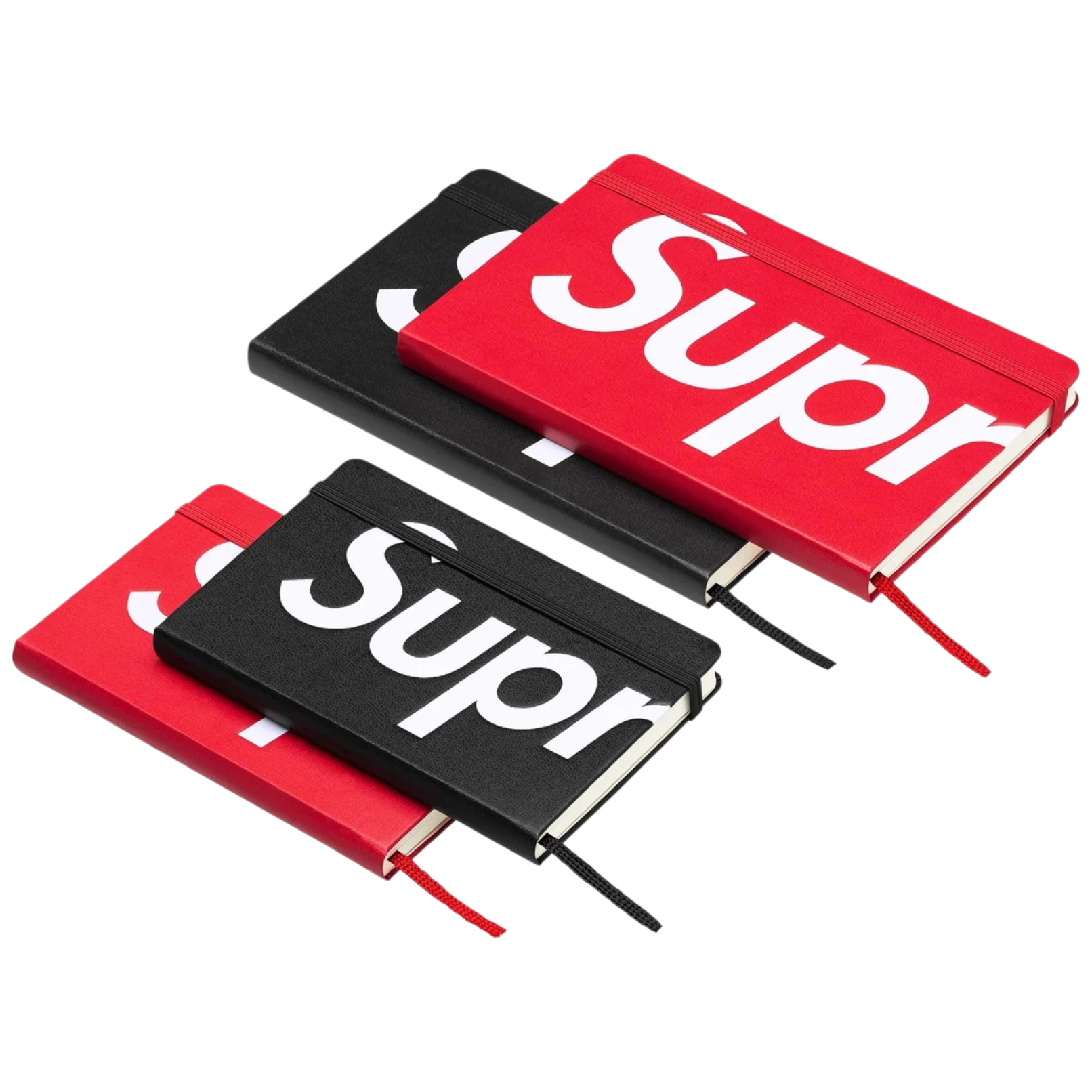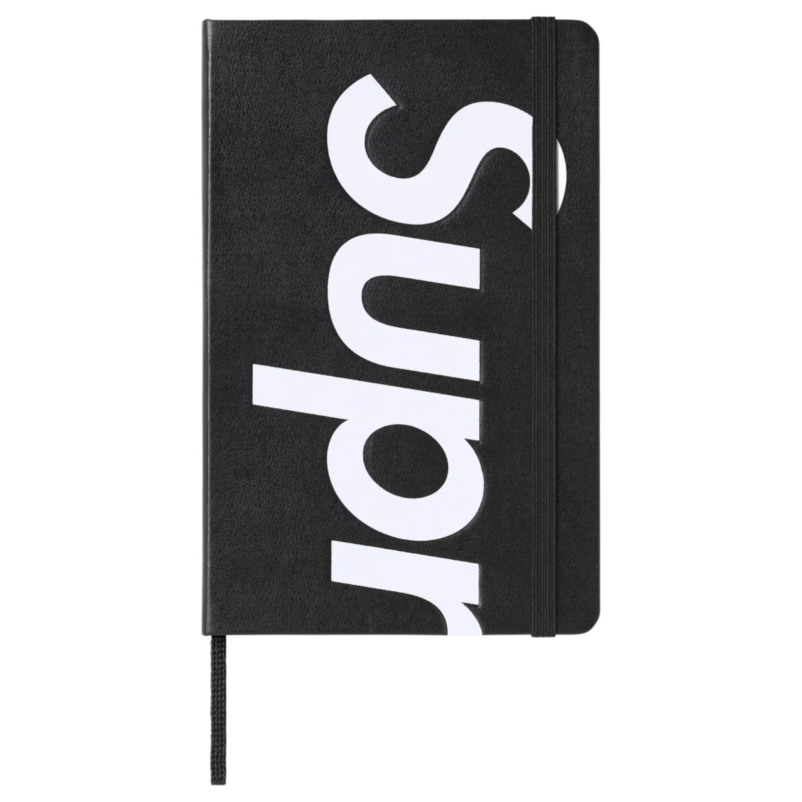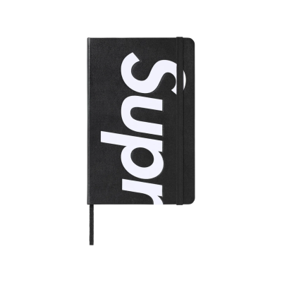 Официальная коллаборация между Supreme и легендарным брендом канцелярии Moleskine — стильный блокнот с фирменным Box Logo от Supreme на чёрной или красной обложке. Выпуск FW24 предлагает два формата: Pocket (9 × 14 см) и Large (11.5 × 17.5 см)