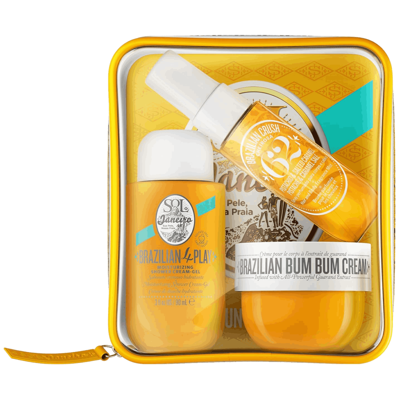 Подарочный набор Sol de Janeiro Gift Pack Yellow представляет собой эксклюзивный комплект продуктов для ухода за телом, выполненный в ярких желтых тонах. В набор входят основные продукты, такие как популярный бразильский крем для тела Bum Bum, известный своим увлажняющим и тонизирующим действием благодаря эксклюзивным ингредиентам, таким как гуарана и масла капуасу и асаи. Также включены душевой гель Brazilian 4 Play Moisturizing Shower Cream-Gel для эффективного очищения и увлажнения кожи, а также спрей для тела Brazilian Crush с легким и освежающим ароматом тропических фруктов и цветов. Этот набор не только обеспечивает полноценный уход за кожей тела, но и станет превосходным подарком благодаря своему яркому дизайну и высококачественным продуктам от Sol de Janeiro.