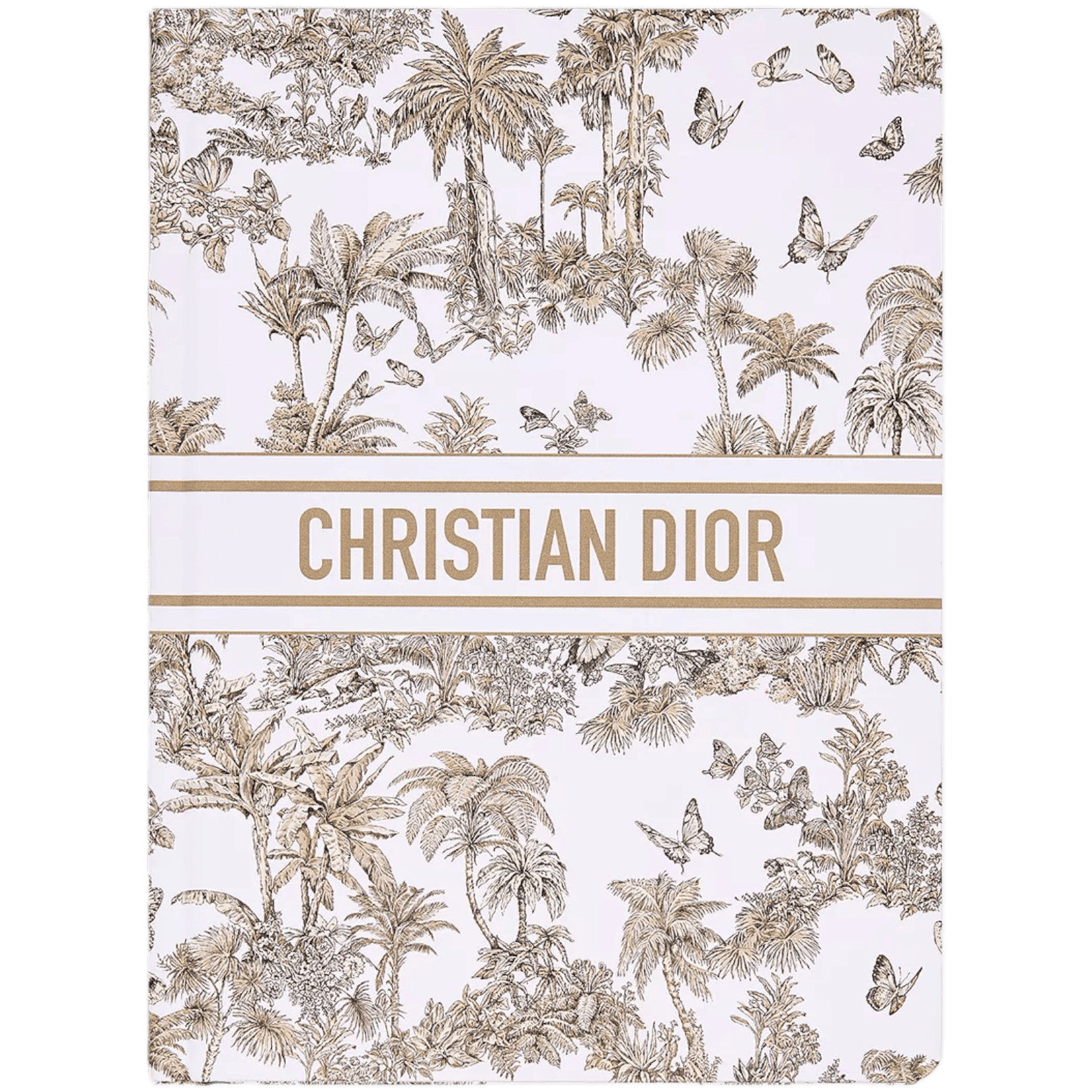 Блокнот Dior из коллекции Dioriviera, созданной Марией Грацией Кьюри. Твердый переплет блокнота украшен бежево-белым узором «пальмы туаль-де-жуи» - это один из культовых узоров Дома. В блокноте 144 линованных страницы. Сделано во Франции.