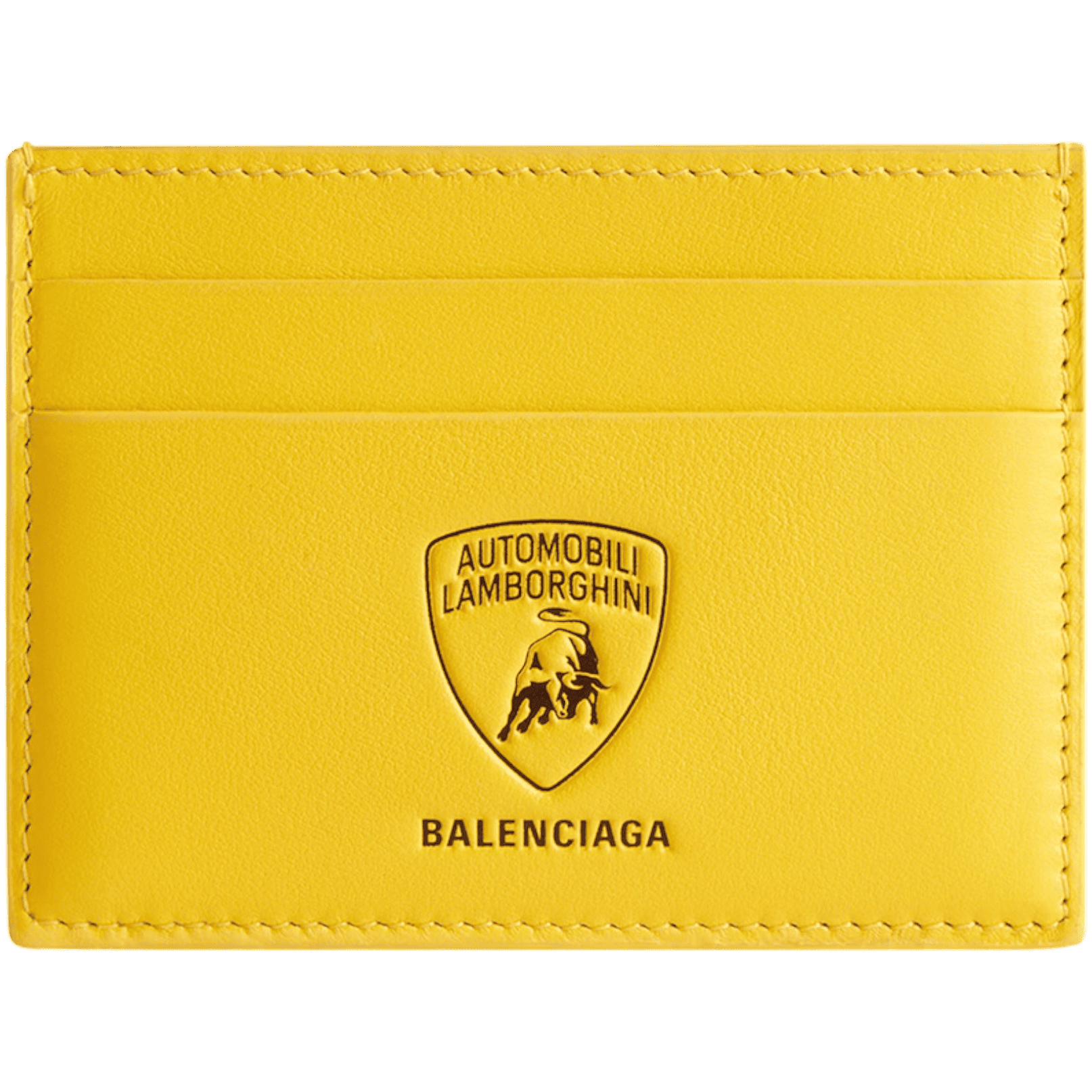 Кардхолдер из коллаборации Balenciaga x Lamborghini выполнен из натуральной гладкой кожи ярко-желтого цвета, который ассоциируется с самыми известными моделями автомобилей Lamborghini. Кардхолдер украшает тисненный двойной брендинг на передней части.