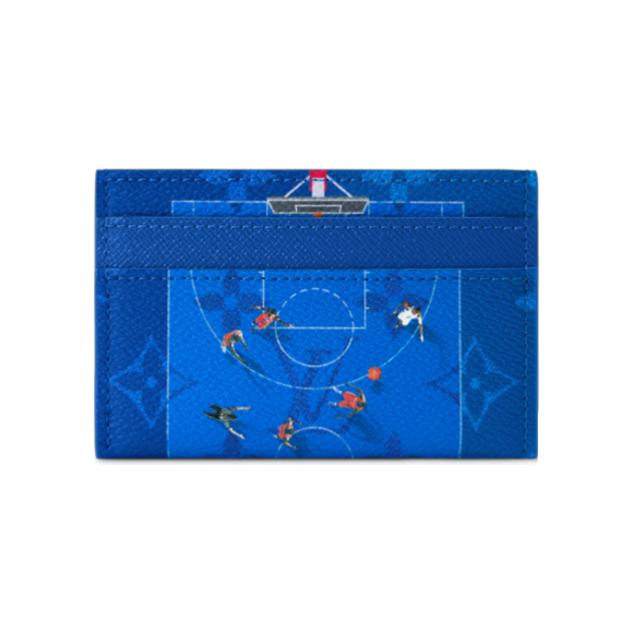 Картхолдер Louis Vuitton Basketball Blue в ярко-синем цвете, украшенный изображением баскетболистов на площадке с высоты птичьего полета. Оформление придает этому классическому аксессуару динамичный вид. Выполнен из классической канвы бренда с принтом Monogram, подкладка из коровьей кожи. Модель имеет четыре отделения для карточек и центральное отделение для мелких предметов.