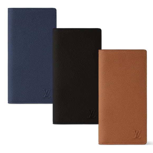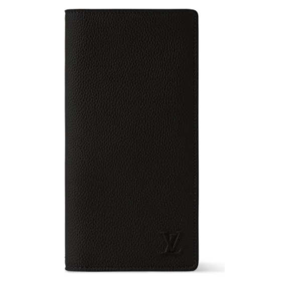 Кошелек Louis Vuitton Brazza из коллекции LV Aerogram, выполненный из вощеной телячьей кожи с зернистым эффектом. Украшен тонкими тиснеными инициалами LV. Функциональная модель оснащена шестнадцатью отделениями для карточек, четырьмя для банкнот, внутренним карманом, отсеком для купюр и отделением на молнии для монет.