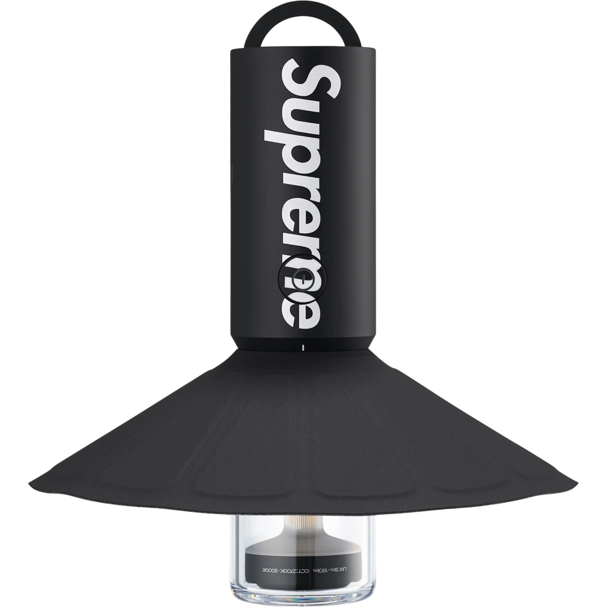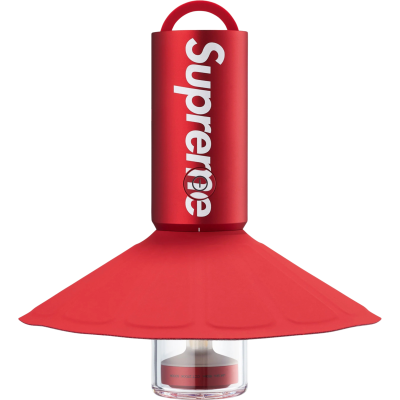 Лампа Supreme HOTO Camp Light — это беспроводной кемпинговый фонарь. Прочный и функциональный. Оснащен водонепроницаемым корпусом и долговечным плафоном из поликарбоната на алюминиевом основании. Яркость света регулируется от 50 до 180 люменов, а также можно настраивать цветовую температуру. Батарея емкостью 3100 мАч обеспечивает до 50 часов непрерывной работы (в зависимости от режима). Компактный дизайн дополнен фирменным логотипом Supreme.