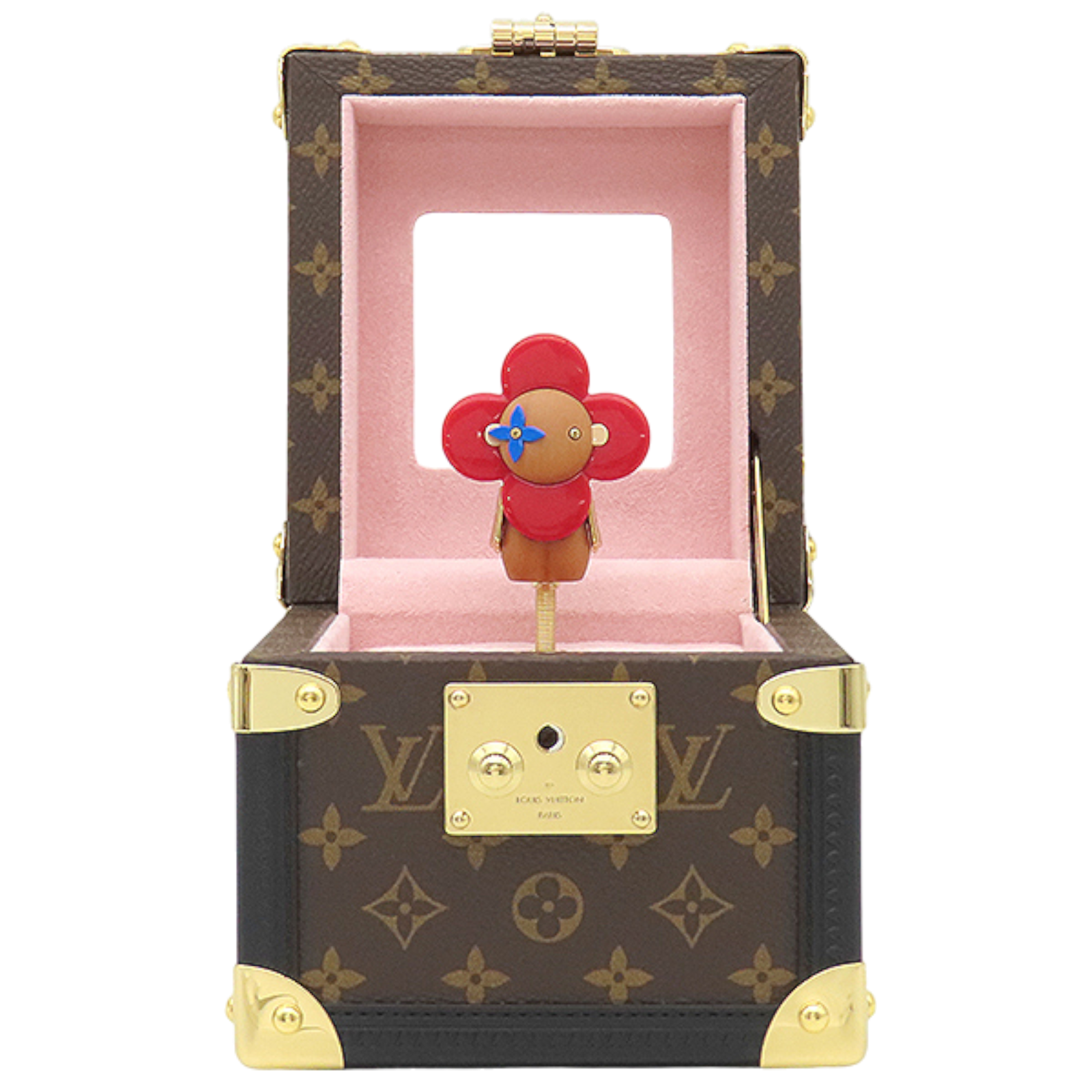 Музыкальная шкатулка Louis Vuitton Vivienne Music Box — это красивый коллекционный предмет, который отлично подойдет в качестве подарка и станет изящным дополнением вашей коллекции. Шкатулка сделана в виде мини-сундука и отделана фирменной канвой Monogram. При поднятии крышки начинает играть мелодия и поднимается танцующая фигурка Вивьен (милый талисман Дома). Может использоваться для хранения безделушек и украшения интерьера. Изготовлена из канвы, металла, дерева и кожи.