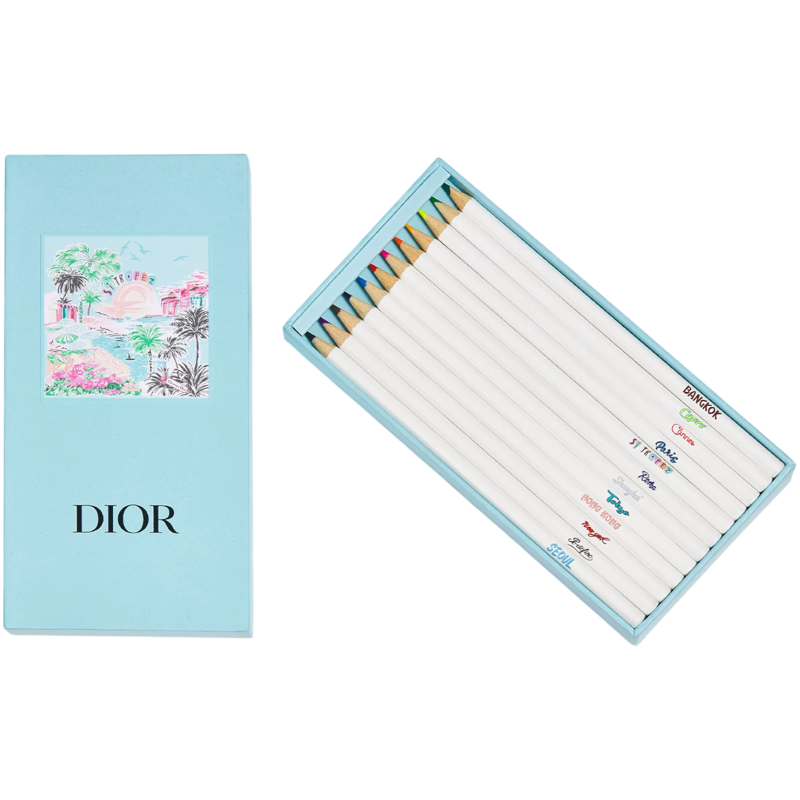 Набор из 12 цветных карандашей от Dior из линейки Dioriviera. Набор отдает дань уважения страсти Диора к путешествиям - каждый цвет соотносится с популярными туристическим городом. Набор станет отличным подарком для коллекционеров и эстетичным украшением интерьера. Сделано во Франции.