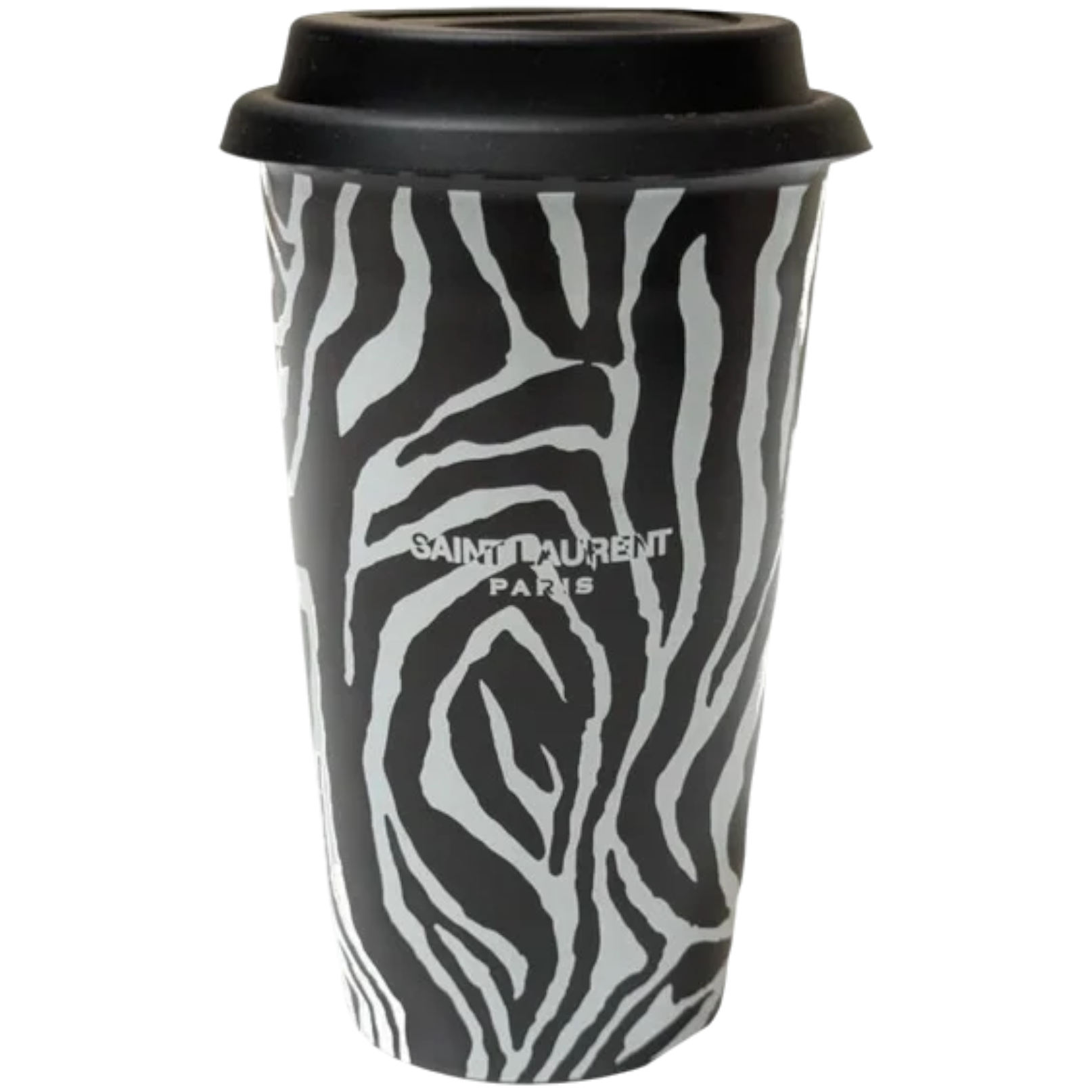 Эксклюзивный и практичный аксессуар от Saint Laurent – керамическая термокружка с силиконовой крышкой. Яркий, но элегантный принт «зебра» станет эстетичным акцентом для ежедневных образов и фотографий. Сделано во Франции.