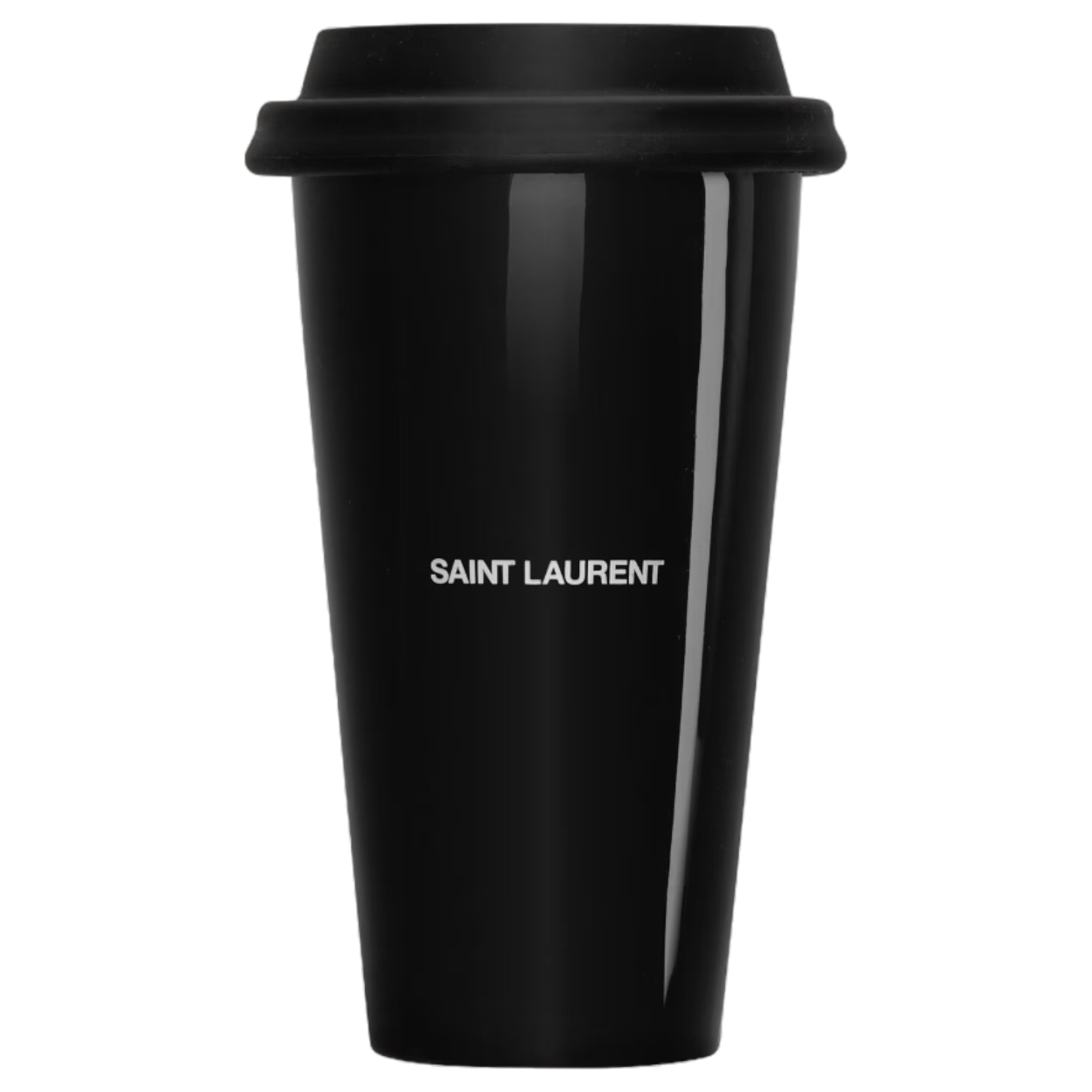 Эксклюзивный и практичный аксессуар от Saint Laurent – керамическая термокружка с силиконовой крышкой и белым логотипом бренда. Выполненная в элегантном глянцево-чёрном цвете кружка станет отличным дополнением к стильным офисным лукам.