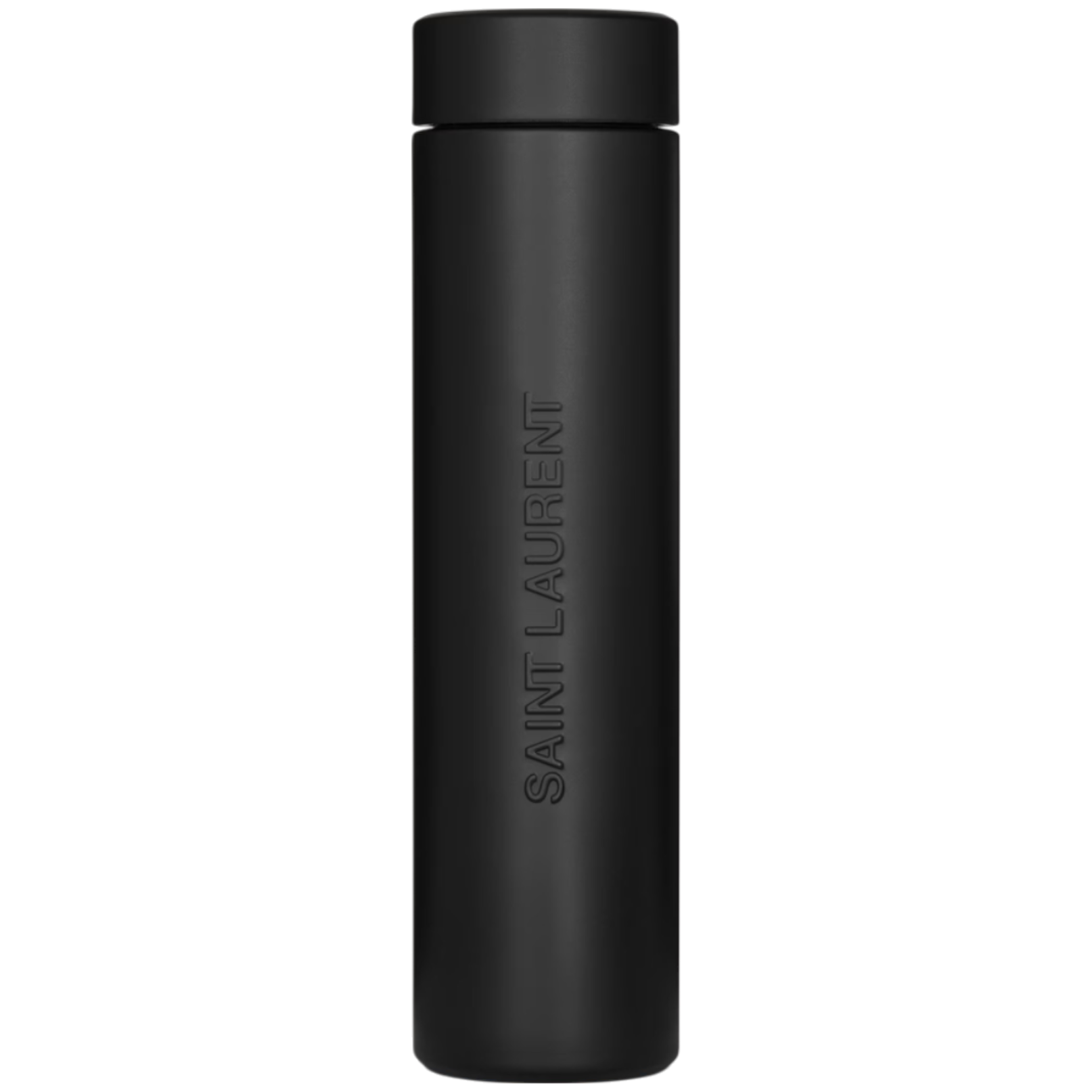 Термос Saint Laurent из нержавеющей стали в черном матовом оттенке с объемным логотипом – это эстетичная и функциональная находка, которую удобно брать с собой в путешествия.