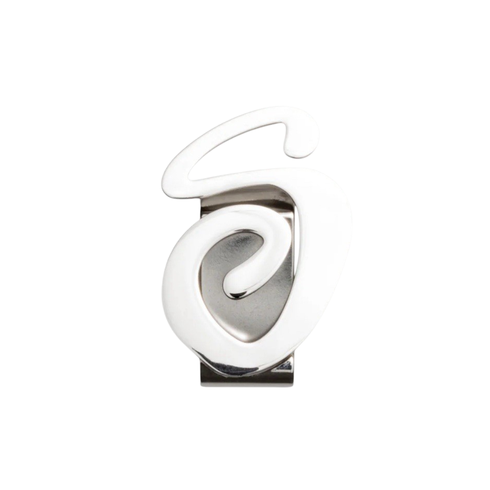 Минималистичный и стильный зажим для купюр от Stüssy — Swirly S Money Clip. Изготовлен из нержавеющей стали и оформлен в виде модного логотипа «S» с плавными линиями. На задней стороне — тиснённый логотип Stüssy. Простой, но выразительный аксессуар, который аккуратно удерживает наличные и подчёркивает streetwear-эстетику.
