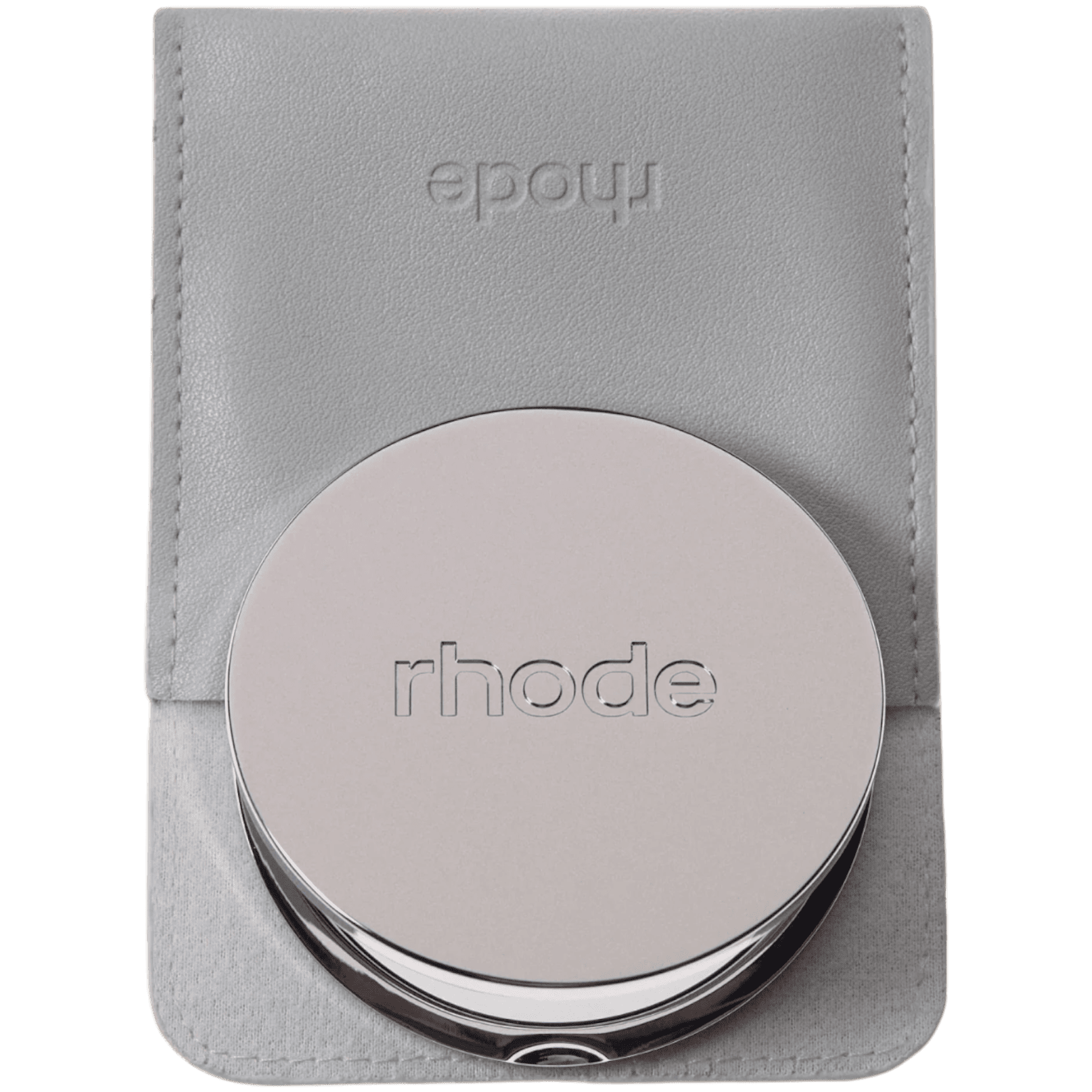 Компактное зеркало Rhode в брендированном тканевом мешочке. Небольшой диаметр зеркальца – 7 см – позволяет носить его в кармане или косметичке, чтобы в любой момент подправить макияж.