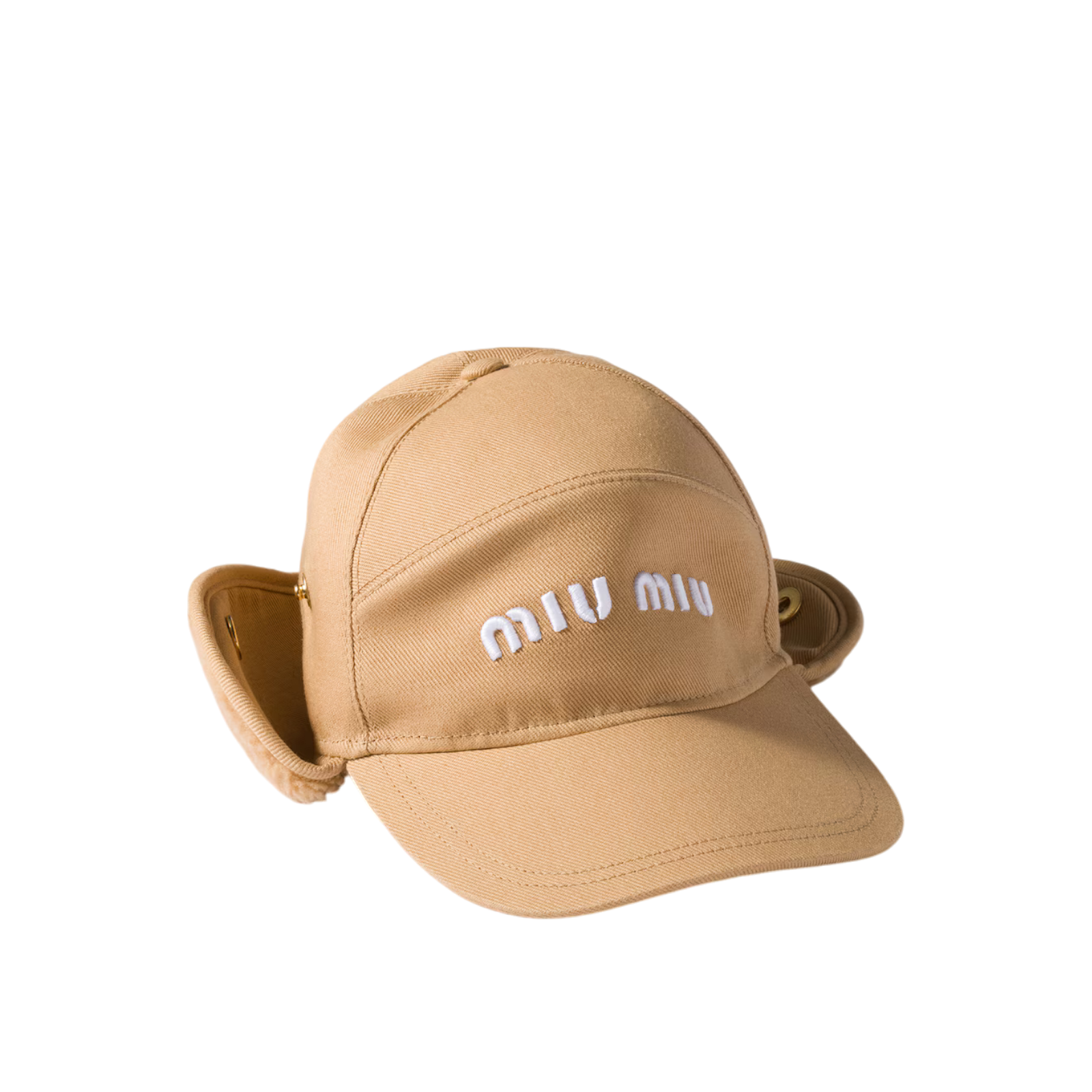 Утепленная кепка Miu Miu — стильный и практичный головной убор для холодной погоды. Внешняя часть выполнена из плотного хлопка, внутри предусмотрена мягкая плюшевая подкладка. Кепка оснащена складными наушниками (ушками) по бокам с акцентными вставками из флиса под искусственный мех. Спереди вышит логотип Miu Miu. Теплая и удобная, согреет даже в минусовую температуру.