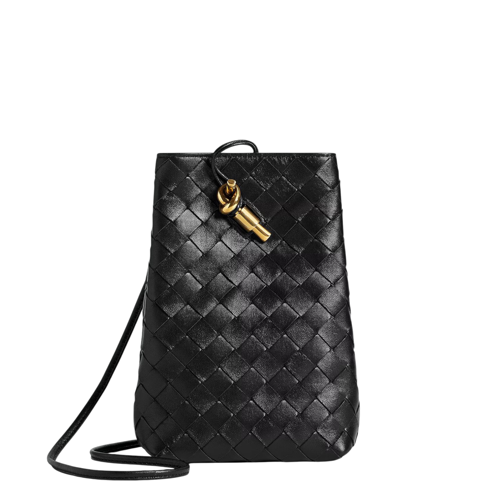 Сумка Bottega Veneta Andiamo Phone Pouch из высококачественной натуральной кожи наппа с застежкой на узел и скользящим ремешком. Украшена фирменным плетением бренда — интреччиато. Станет уникальным аксессуаром, дополняющим любой образ. Легкая и вместительная.