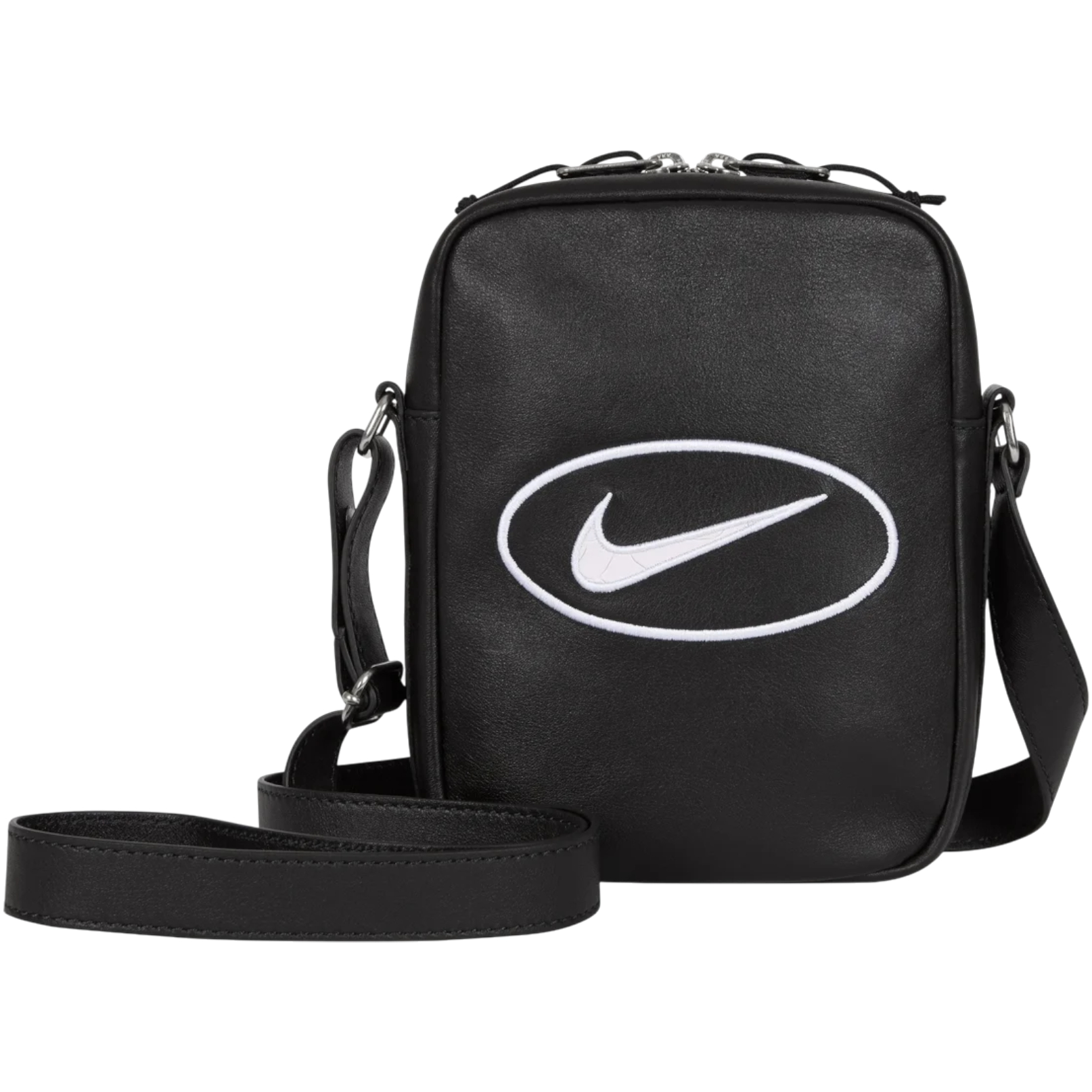 Сумка через плечо из коллаборации Supreme x Nike сезона весна-лето 2025. Сумка выполнена из натуральной кожи с тиснением под крокодила на логотипе Nike. Регулируемый ремешок позволяет стилизовать сумку различными способами.