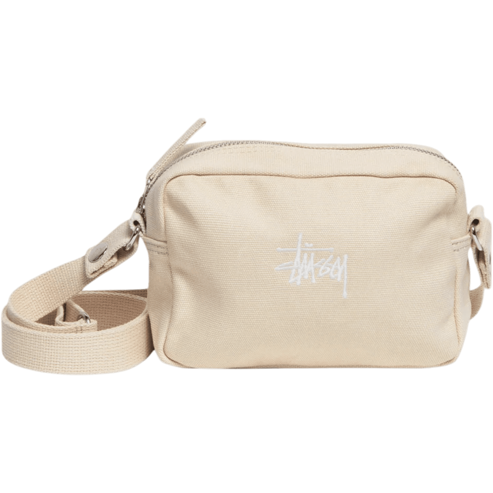 Сумка через плечо от Stussy с вышитым логотипом выполнена из практичного хлопкового материала и дополнена регулируемым ремнем из плетеной ткани. Размер сумки - 19 см х 14 см.