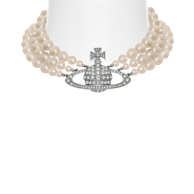 Чокер Vivienne Westwood Three Row Pearl Bas Relief Platinum