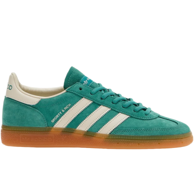 Модель Spezial, изначально созданная для гандболистов, в интерпретации Sporty & Rich получила новое ретро-преппи прочтение. Коллаборация сохранила минималистичный силуэт, но добавила роскошные замшевые и кожаные детали, подчеркивая приверженность бренда к высокому качеству и ностальгии.