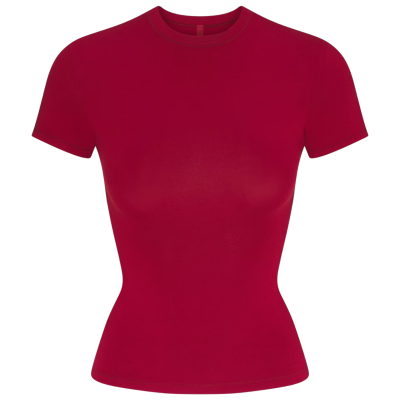 Базовая футболка от SKIMS из коллекции Cotton Jersey — это идеальное сочетание комфорта и минималистичного стиля. Модель выполнена из мягкого и эластичного хлопка с добавлением стрейча, что обеспечивает приятную посадку по фигуре, не стягивая движения. Благодаря лаконичному крою, она легко сочетается с джинсами, трикотажными брюками или надета под верхнюю одежду. Отличный выбор как для повседневной носки, так и для домашнего уюта.