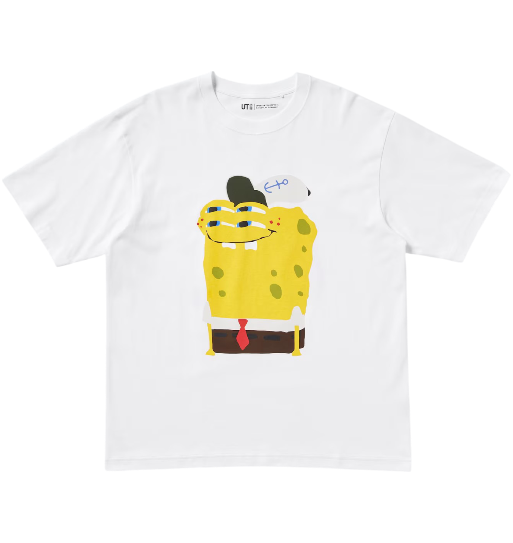 Эксклюзивная тройная коллаборация в честь годовщины выхода мультфильма Sponge Bob. Главные герои анимационного сериала изображены в фирменном стиле бренда Cactus Plant Flea Market — он известен принтами с четырехглазыми смайликами. Надписи на вещах — самые запоминающиеся фразы персонажей.