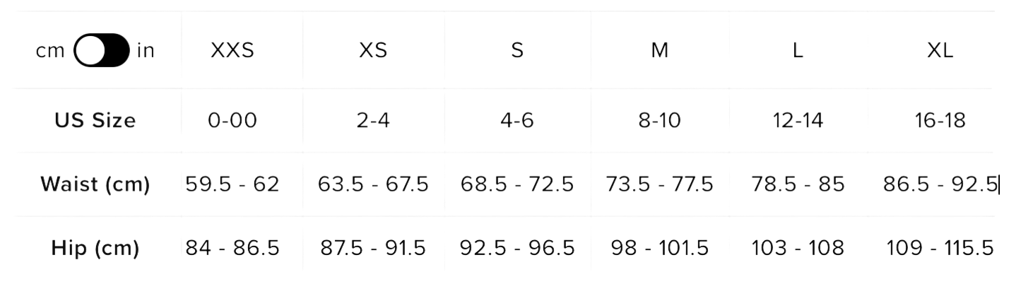 Таблица размеров
