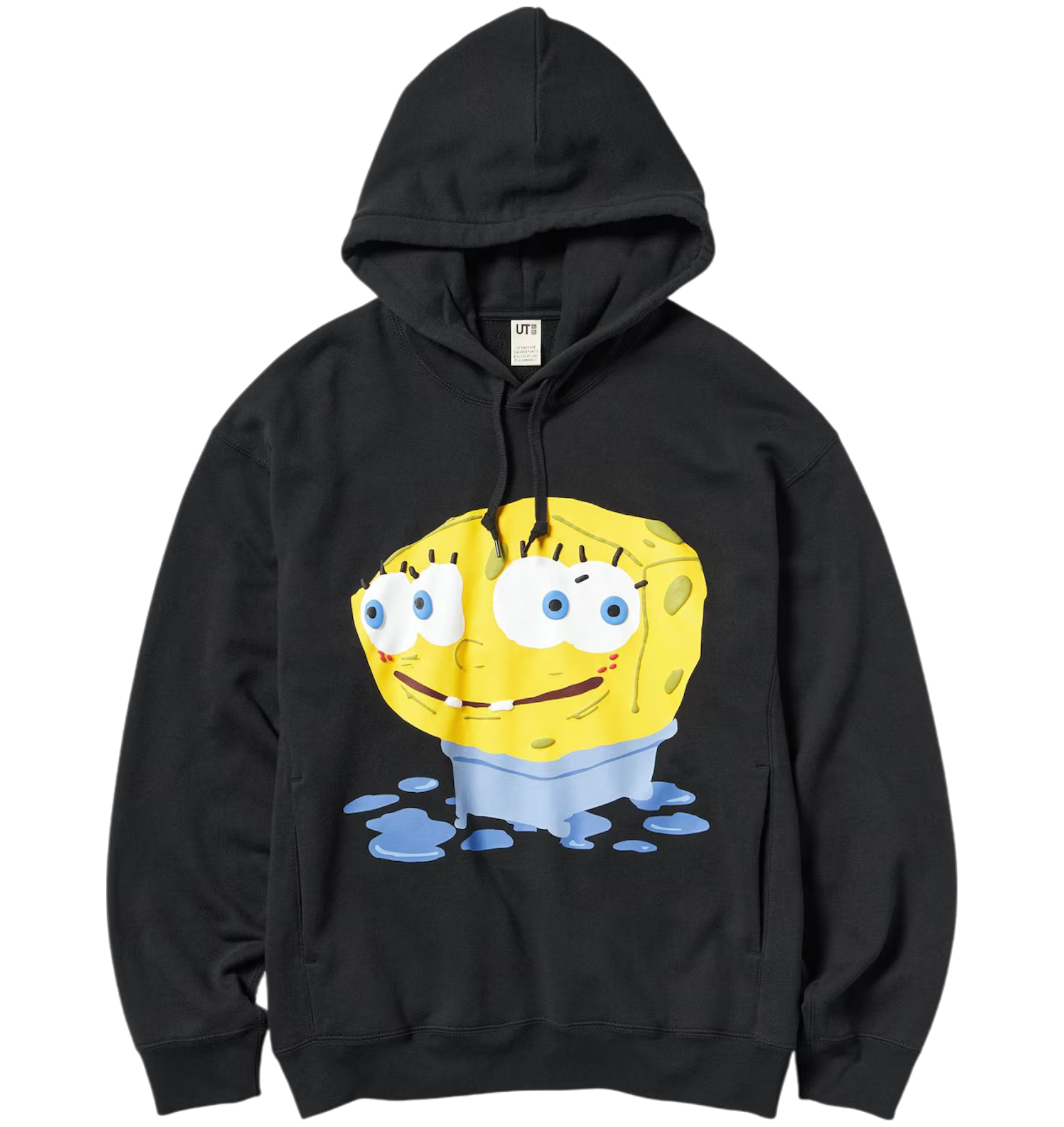 Эксклюзивная тройная коллаборация в честь годовщины выхода мультфильма Sponge Bob. Главные герои анимационного сериала изображены в фирменном стиле бренда Cactus Plant Flea Market — он известен принтами с четырехглазыми смайликами. Надписи на вещах — самые запоминающиеся фразы персонажей.