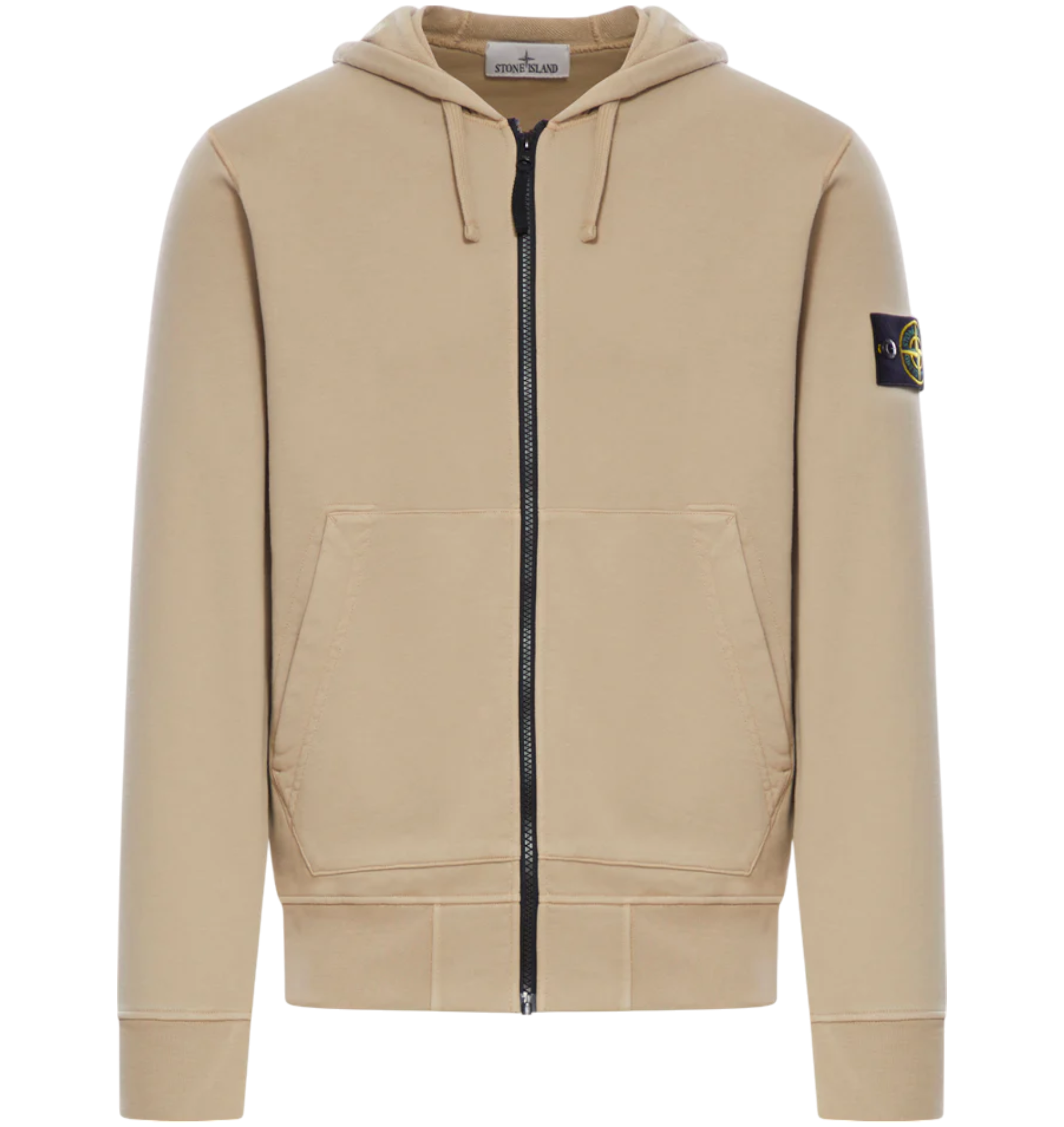 Зип-худи Stone Island из хлопкового флиса с карманами и неплотно прилегающими резинками по нижнему краю и на манжетах. Фирменные особенности худи бренда Stone Island – нашивка на рукаве, качественные оверлочные швы и окрашивание в технике garment, при которой вещи окрашиваются уже в готовом виде, что создает эффект перелива цвета.