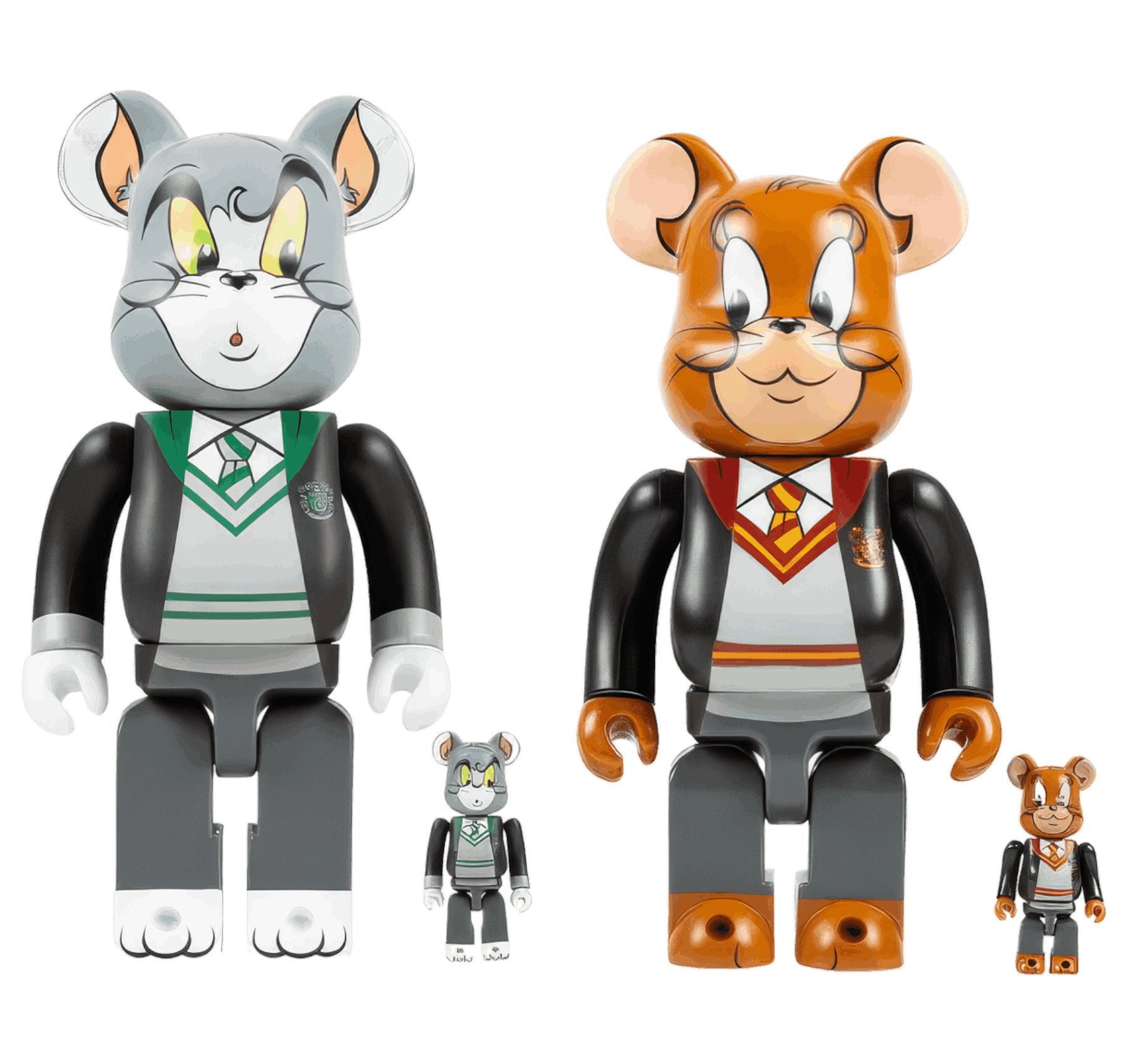 Фигурки Bearbrick, бесспорно, являются объектами современного искусства, а когда они выполнены в виде героев любимых мультфильмов, как Том и Джерри, они ценные вдвойне. Более того, бренд пошел дальше и объединил несколько вселенных в одной фигурке: Том и Джерри в школьной форме Хогвартса и они же в обличии Супермена, Бэтмена и Джокера из комиксов DC. В серии Bearbrick Tom & Jerry Hogwarts персонажам даже подобрали факультет по характеру: Том в форме Слизерина, Джерри – Гриффиндора.