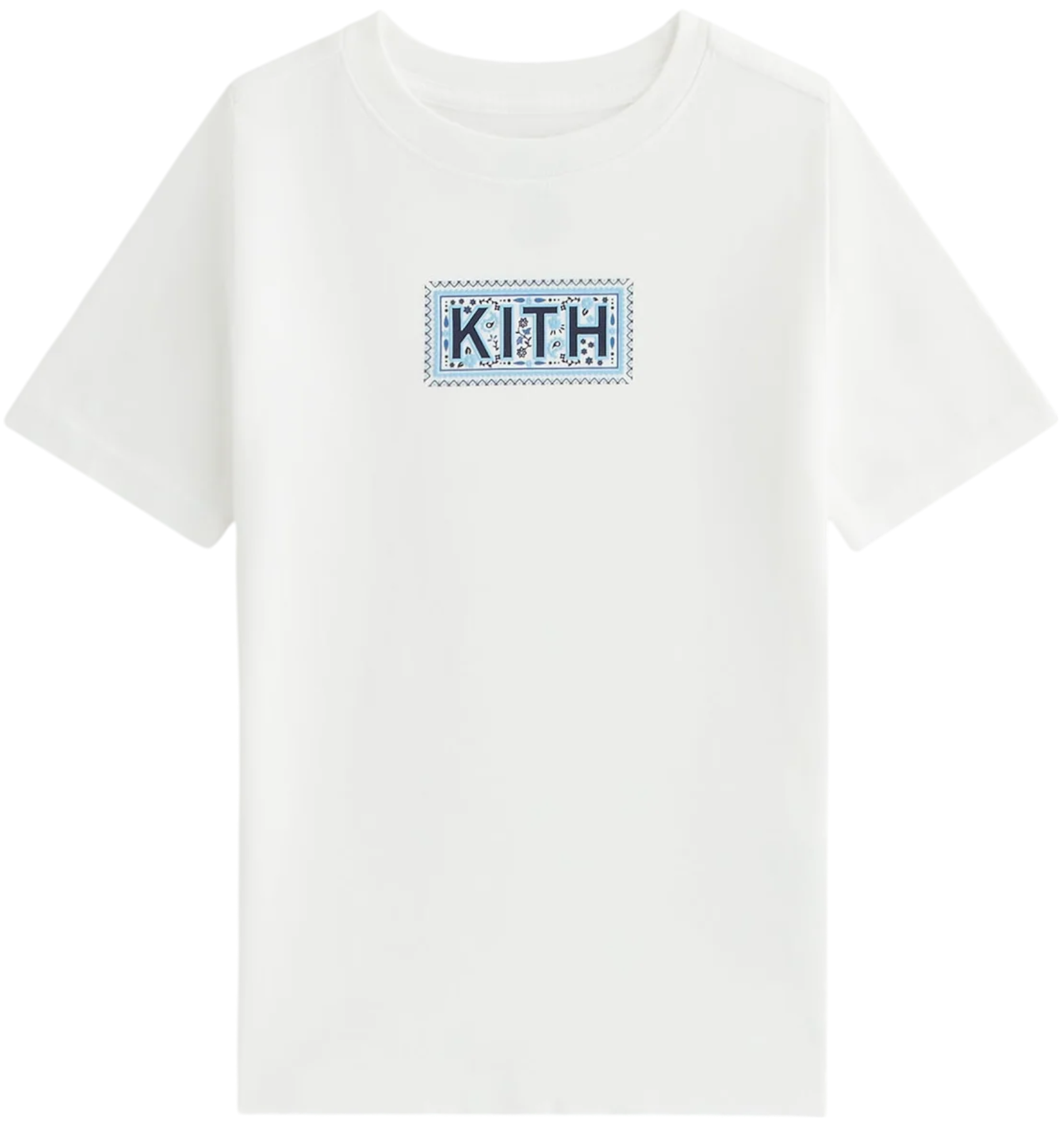 Детская футболка Kith из хлопка с элегантным акцентом в виде логотипа Kith, украшенного принтом Needlepoint, имитирующим вышивку по ткани с цветочным узором. Материал футболки - 100% хлопок.