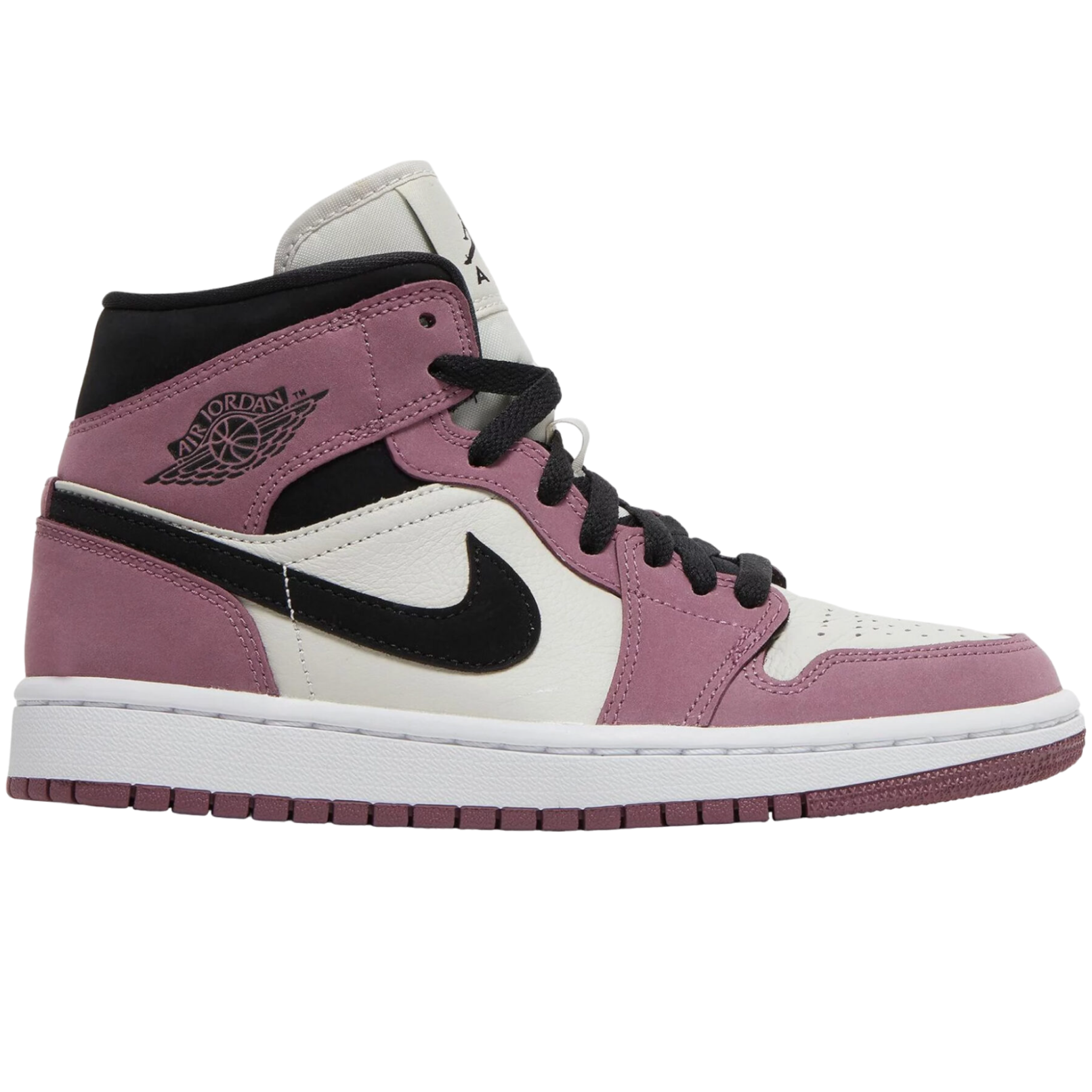 Air Jordan 1 Mid Berry — это стильные кроссовки, которые сочетают в себе классический дизайн и яркие акценты. Верх выполнен из комбинации белой и чёрной кожи, а также имеет вставки цвета спелой вишни.