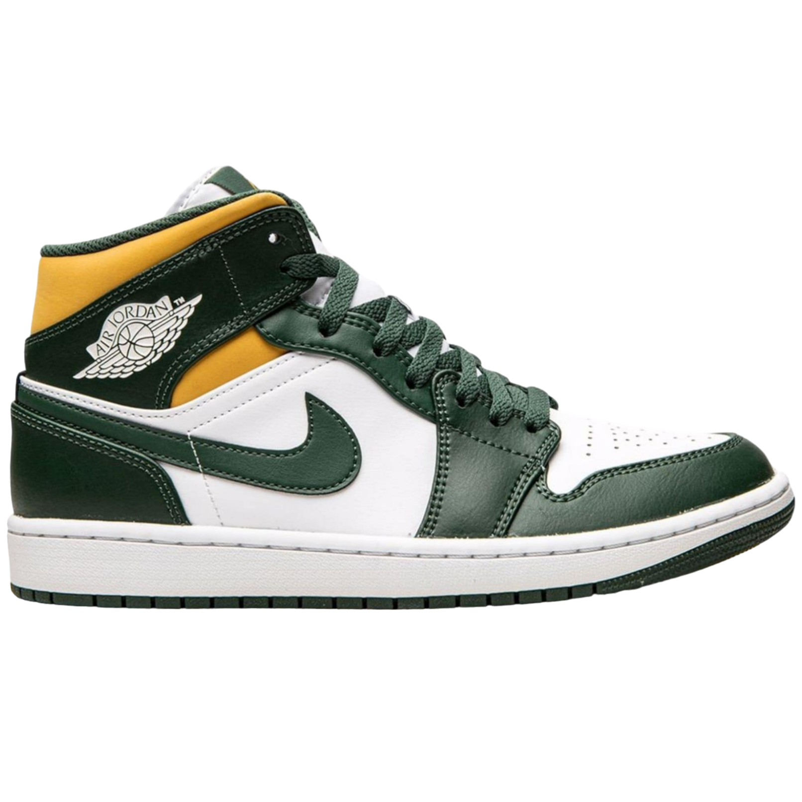 Air Jordan 1 Mid Sonics (Brazil) — это кроссовки, выпущенные в 2021 году. Они выполнены в стиле Air Jordan 1 с яркими и энергичными элементами, вдохновлёнными баскетбольной командой Seattle SuperSonics. Кроссовки изготовленыиз белоснежной кожи с тёмно-зелёными и глубокими жёлтыми деталями. На язычке присутствует логотип Jumpman, а на лодыжке — эмблема Wings.