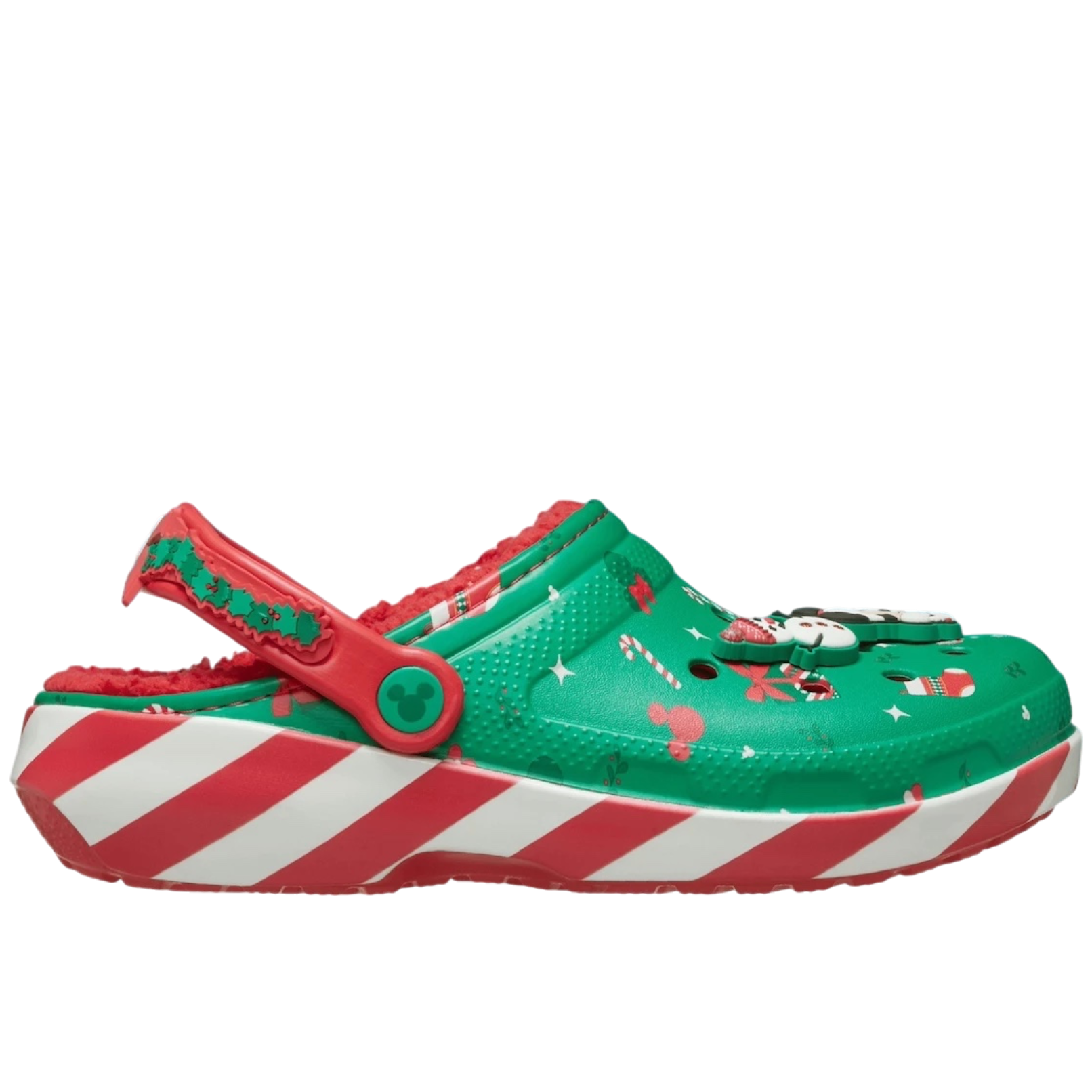 Рождественские кроксы Crocs x Mickey Mouse в насыщенном зеленом цвете новогодней ели с подошвой в стиле праздничного леденца. Кроксы украшены 6 эксклюзивными джибитсами в рождественской тематике с Микки и Минни Маус. Отличительной особенностью зимних Crocs Mickey Mouse является пушистая подкладка для обеспечения дополнительного тепла и комфорта.