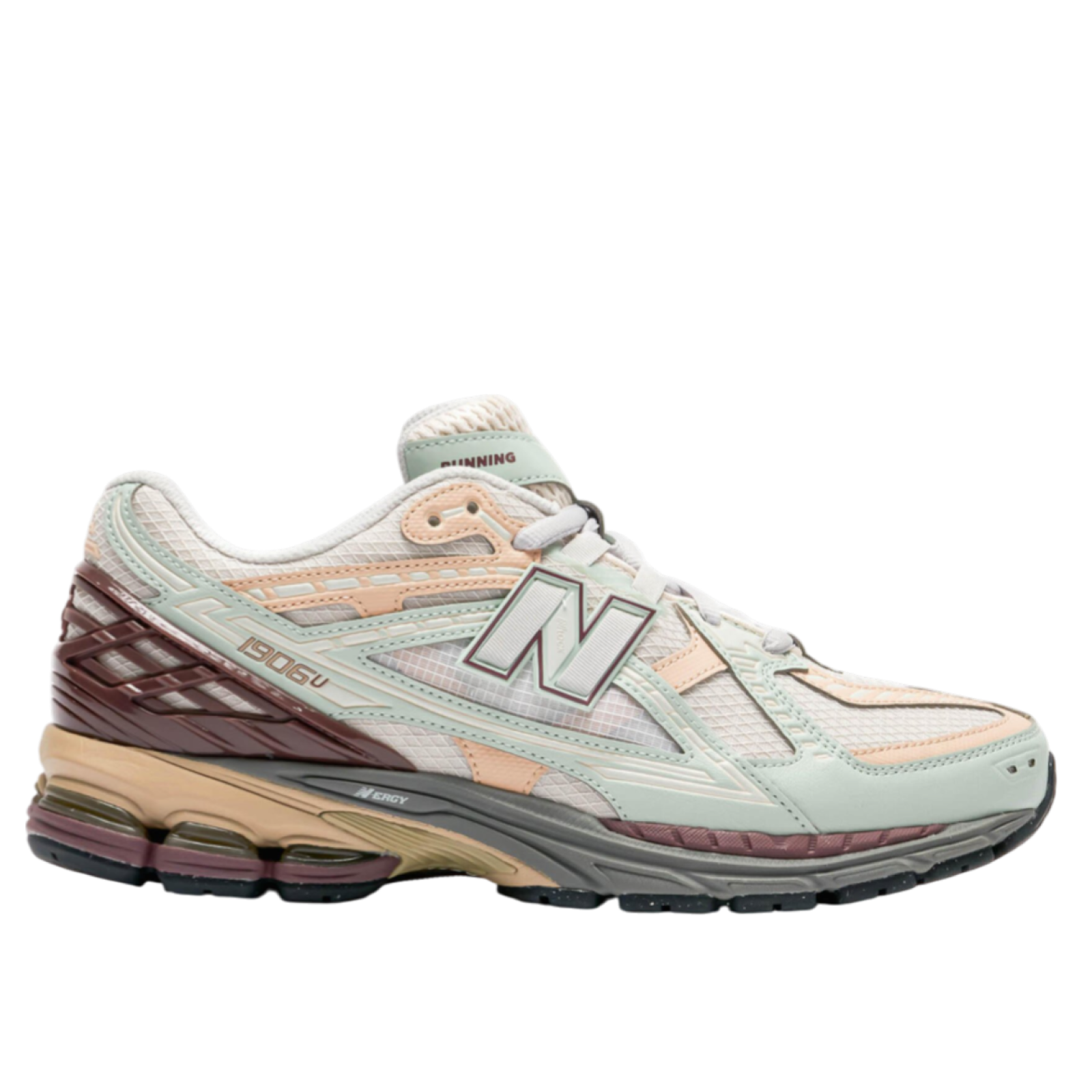 Обновленная версия кроссовок New Balance 1906 2024 года в цвете Ash Grey, сочетающим оттенки бежевого, серого и светло-бирюзового и коричневого. Модель NB 1906 - это архивная модель, перевыпущенная брендом на волне тренда на ретро кроссовки, цифра в названии - год основания бренда.