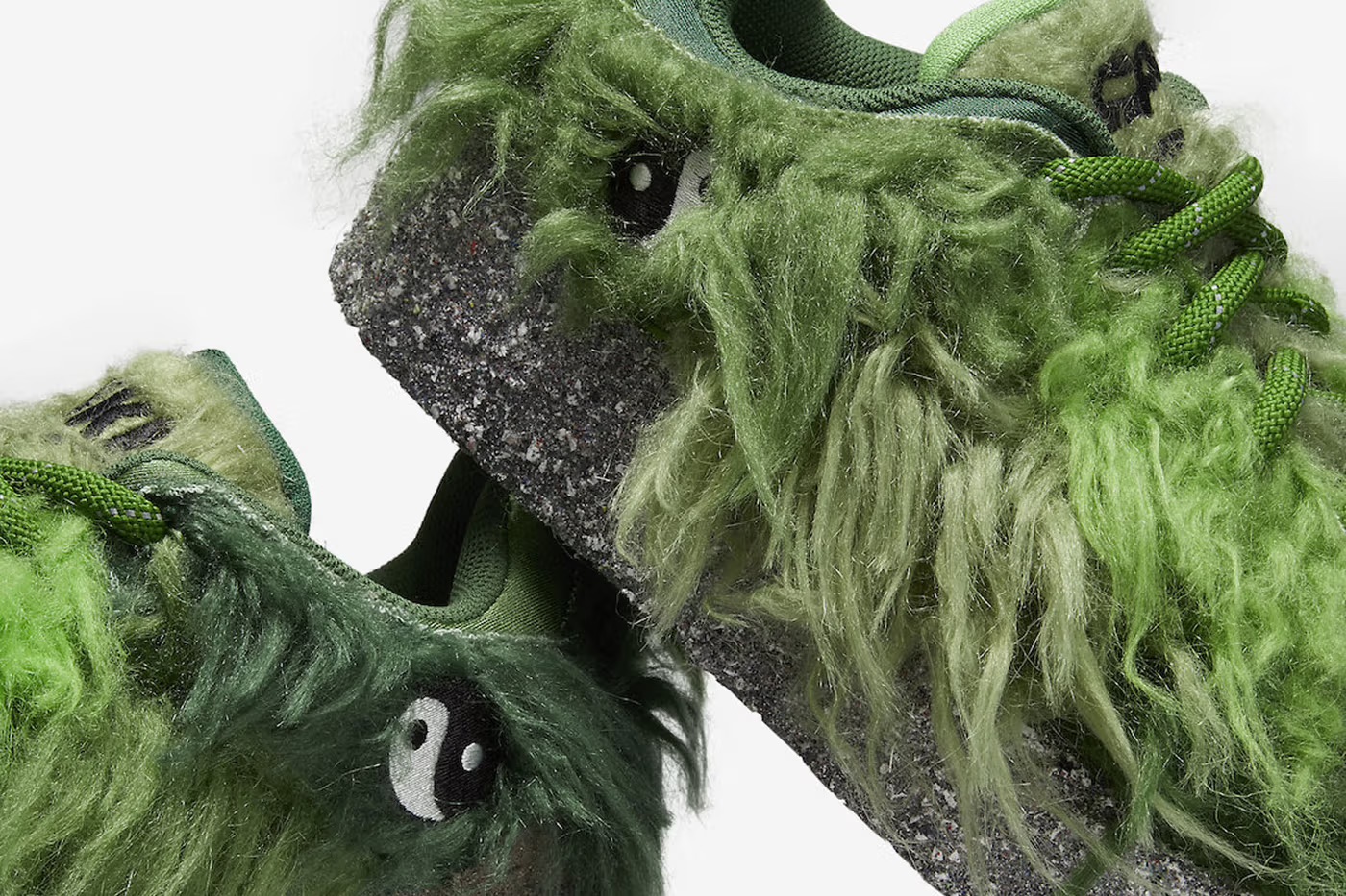 Бренды предоставили простор для творчества и самовыражения, предложив перед ноской подстричь растрепанный мех под себя. Еще одна цепляющая деталь – это ассиметричная подошва: на одном кроссовке она напоминает асфальт, на другом – сырую почву.