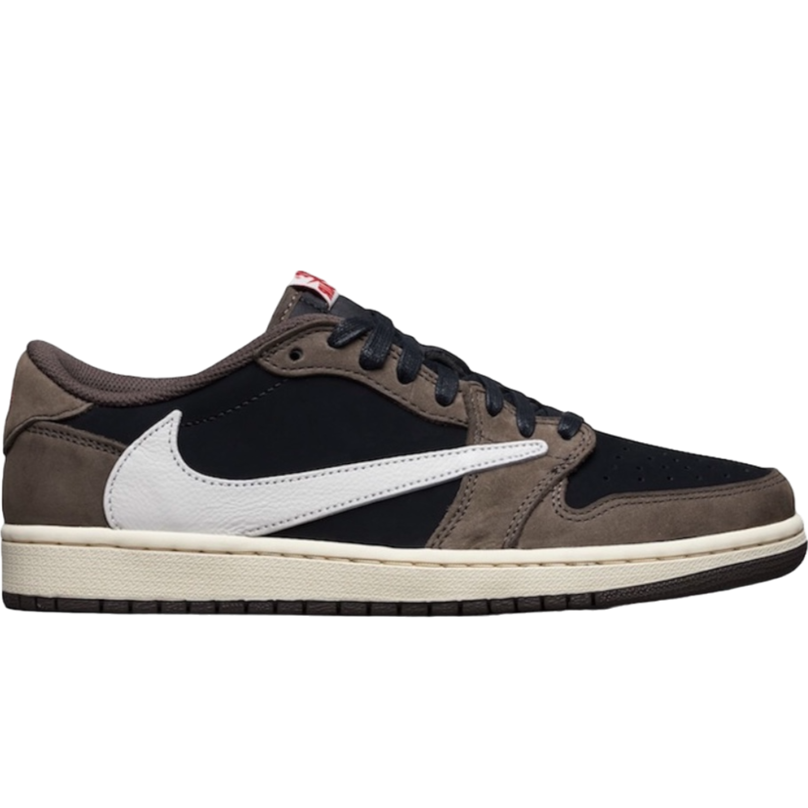 Travis Scott x Air Jordan 1 Low OG Mocha — это стильная и удобная обувь для мужчин, выполненная в чёрном цвете с элементами тёмно-коричневого оттенка.